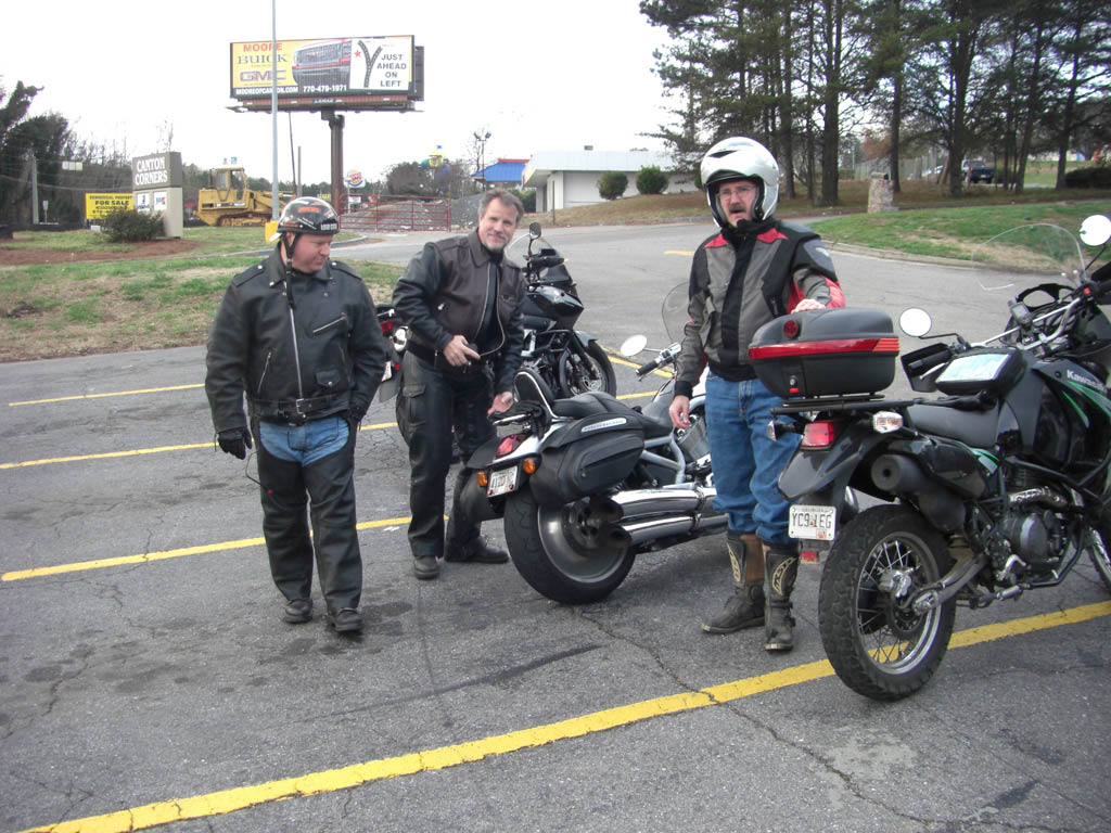 Four of the core riders (Bob K., Larry, Scott and Bob S.) braved the chill and dark cloudy skies to meet at Williamson Brothers BBQ's parking lot at 10 a.m.to begin the ride out to Floyd and Walker Counties and the scenic area around Johns Mountain.