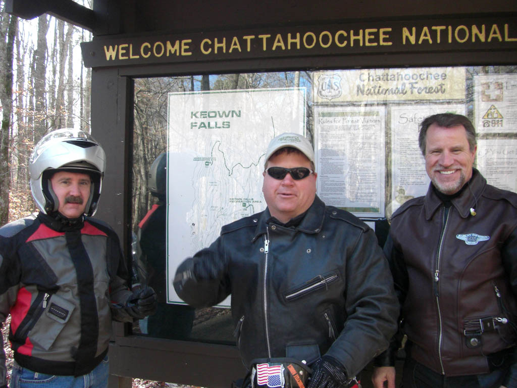 Going out on SR 140 at "five over" numbed some toes and fingers, but the slower speeds on backroads in the Johns Mountain area, and the welcomed arrival of the sun, helped a lot to warm things up.. The ride north to Villanow through the Chattahoochee National Forest and along side of Johns Creek was pleasant and worthy of a return trip in the Summer, with time to explore the side roads and the creek. The group tackled the one mile gravel road up to the Keown Falls information center but opted out of the mile or so climb to the falls itself, as they were judged "probably dry this time of year"(besides hiking in motorcycle boots is not high on their list of things to do).