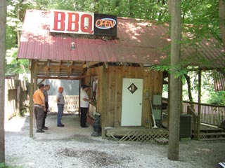 Nine of us, on eight bikes, made our way through Murphy and Andrews, North Carolina, to the cool gorge of the Nantahala River, arriving a little after 11 a.m. We worked our way to a parking spot near the Lesser Wesser Class 3 drop to see the action. But there was little action. The "man' had spoiled our plans. It seems that even though the TVA releases water early in the day, the raft concessions are not allowed to move to the put-ins until 10 a.m., meaning the river folks wouldn't make it down to our lookout until well after noon. We took it in stride though, and headed up river a ways to have a barbecue lunch, riverside. Very nice.