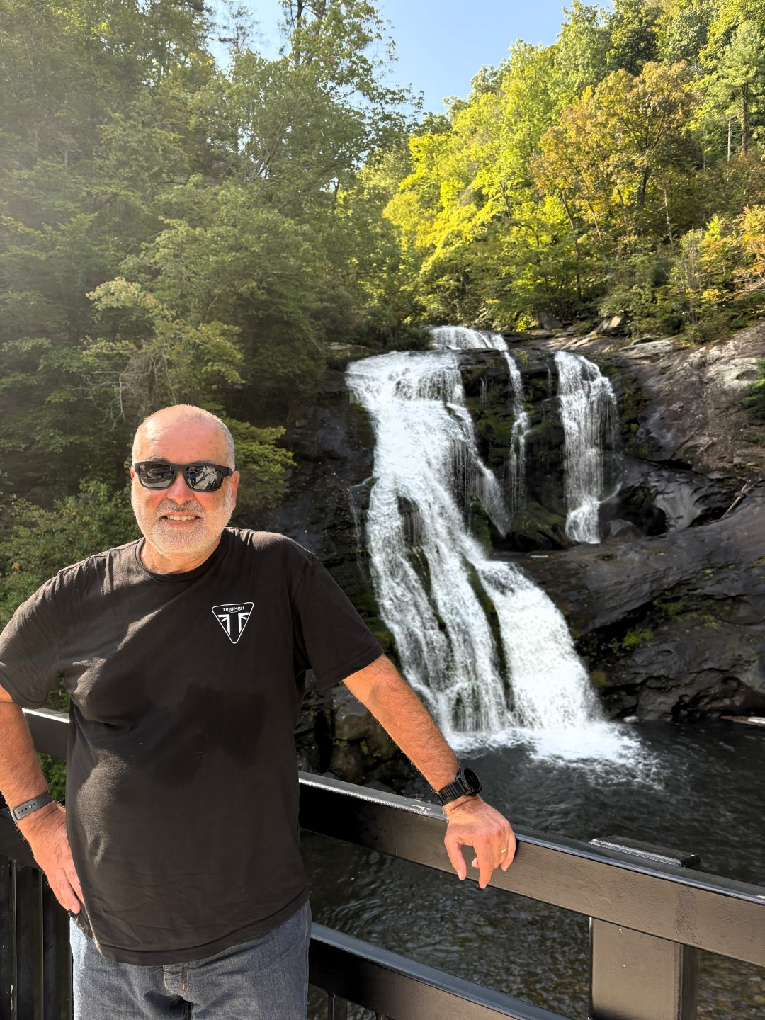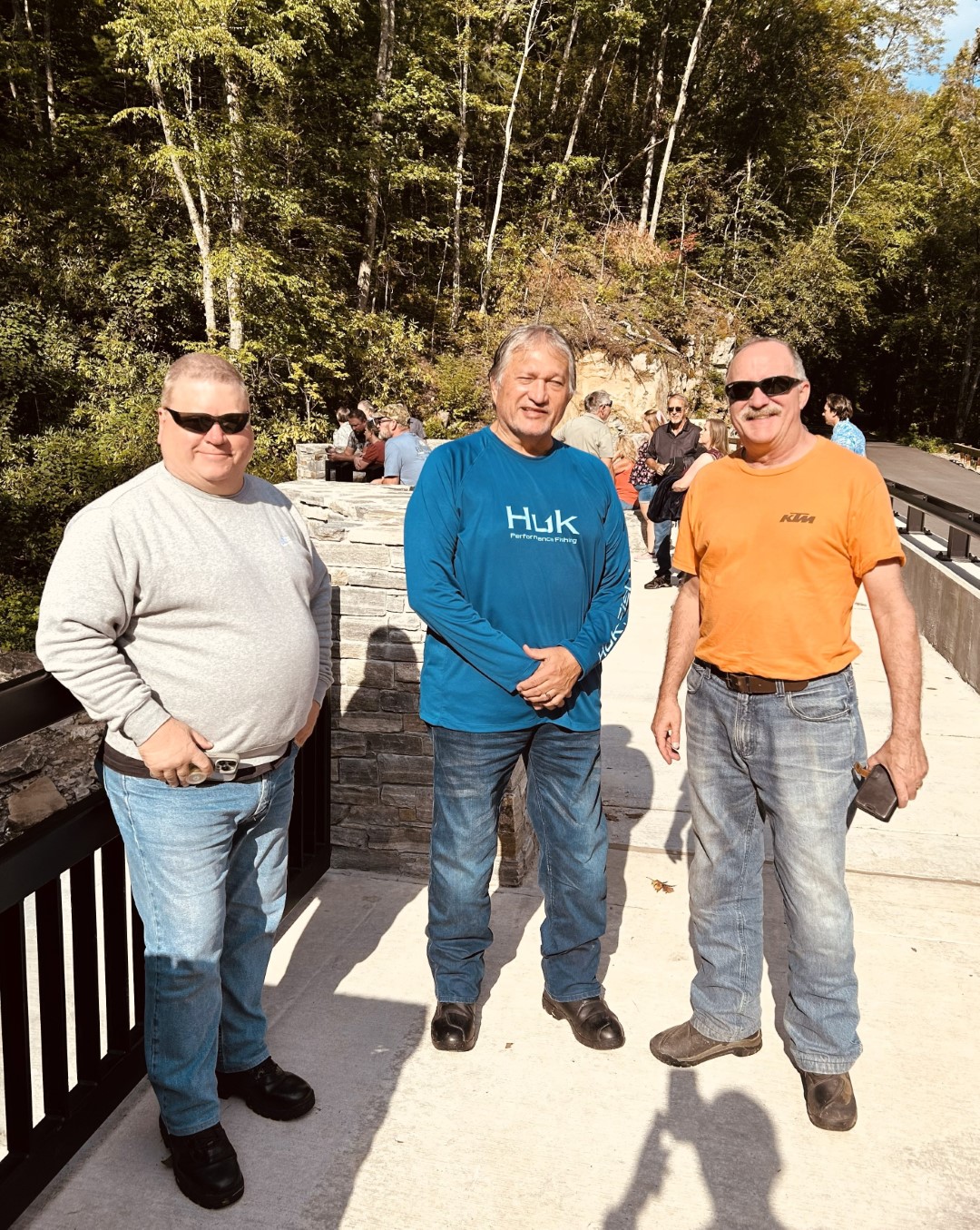 Saturday arrived with the promise of completely clear skies and beautiful riding. They began the infamous Cherohala Skyway and headed to Bald River Falls. The Forest Service recently completed a new bridge to replace the previous bridge which forced falls viewers onto the same road space as vehicles. All agreed the new setup which separates viewing from traffic is absolutely top notch, as well as the extensive road improvements and repaving of the six miles leading to the falls. This had to cost a bundle - thank your politicians.