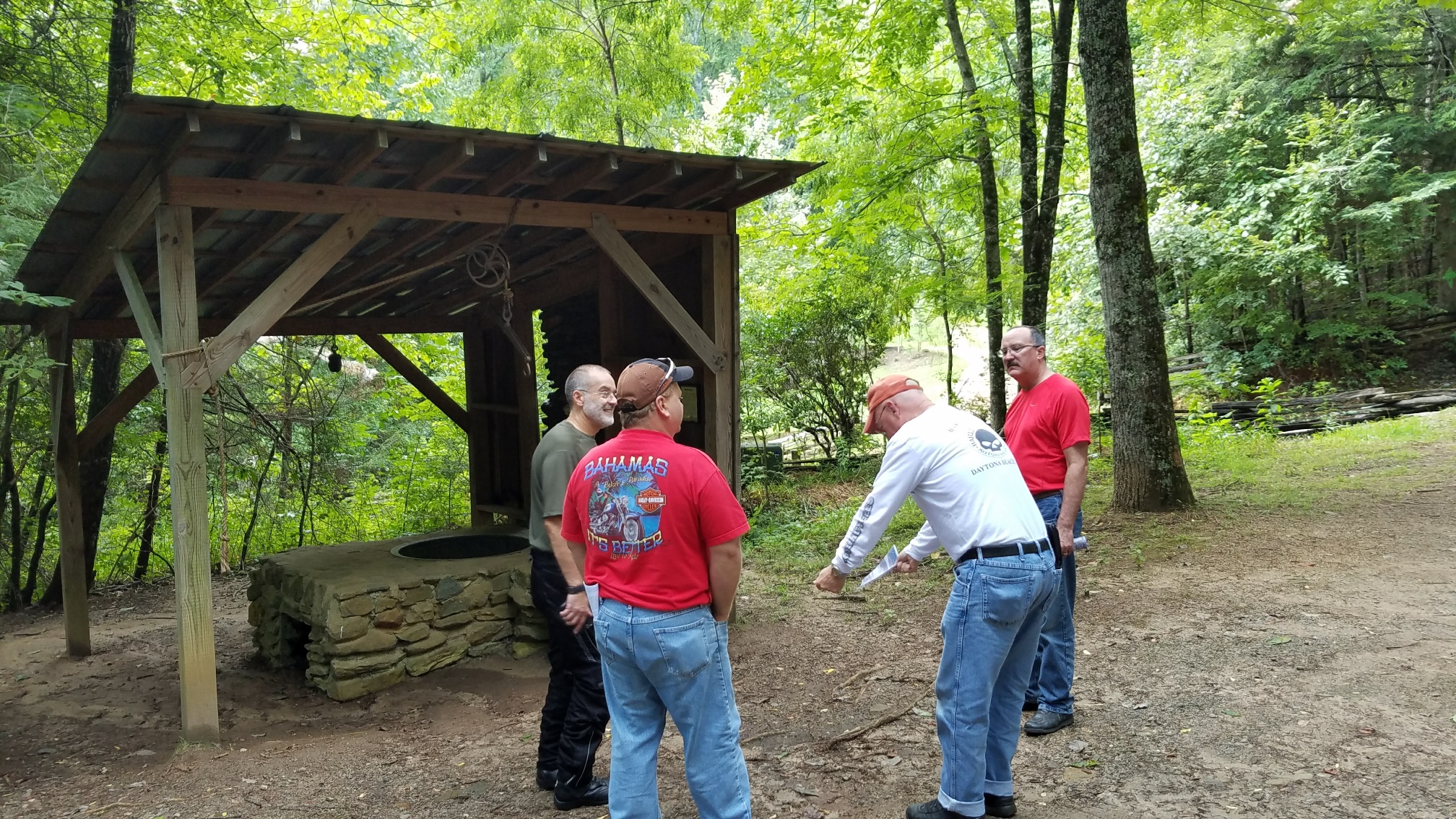 t was interesting envisioning Appalachian life as we toured the old log cabins and viewed the rusty farm relics so vital to them. As I was learning about “hog scalding”, I was amazed to hear stories from two of our riders who grew up helping their families with that activity around the holidays. Although we thoroughly enjoyed the chapel UP the hill, the humidity was taking its toll – time to roll.