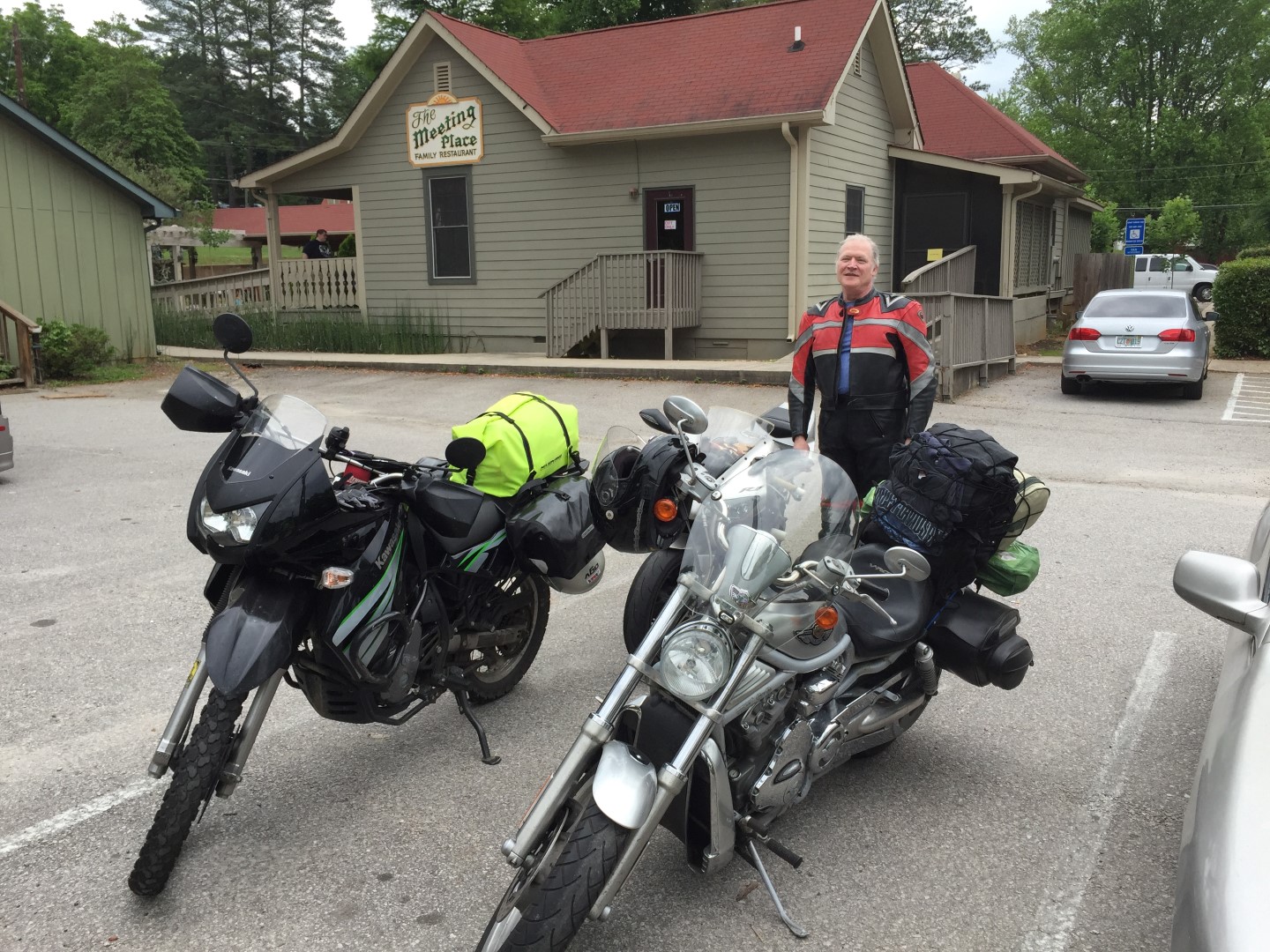 Despite worrisome weather forecasts (30% - 70% rain), Larry, Scott and Dennis hoped for the best for their overnight to TWO Wheels Only of Suches, Ga. They met at 3:15 in Ball Ground and promptly headed North before an advancing shower caught them. To their surprise, the skies cleared and they enjoyed a beautiful ride to Jasper, then across the Burnt Mt area (136) and past Amicalola Falls (52).