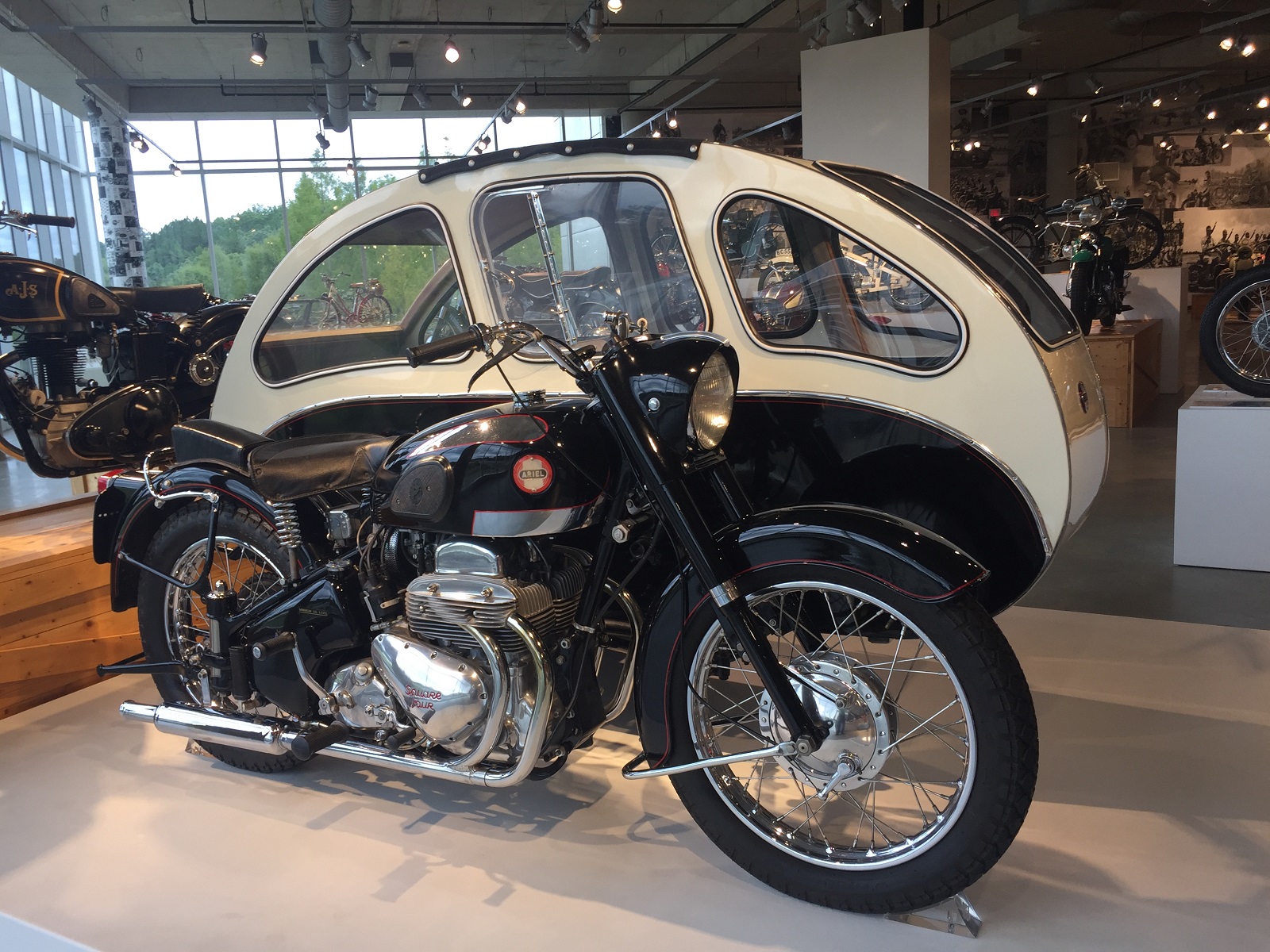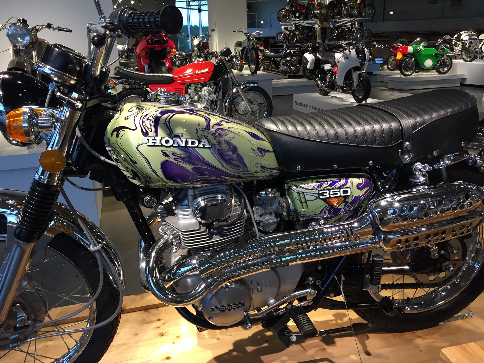 The museum shows over 900 motorcycles of every make imaginable and has another 900 in storage from which to refresh exhibits.