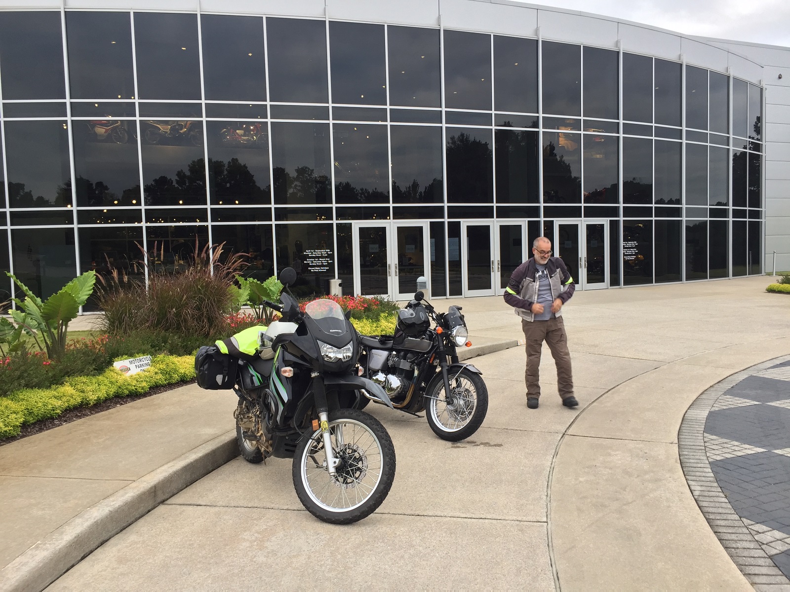 Then to Oak Mtn State Park about 10 miles S of the museum. They snagged a couple of tent sites, set up quickly, then headed to the museum in Leeds, AL. Of course, motorcycles park at the front door!