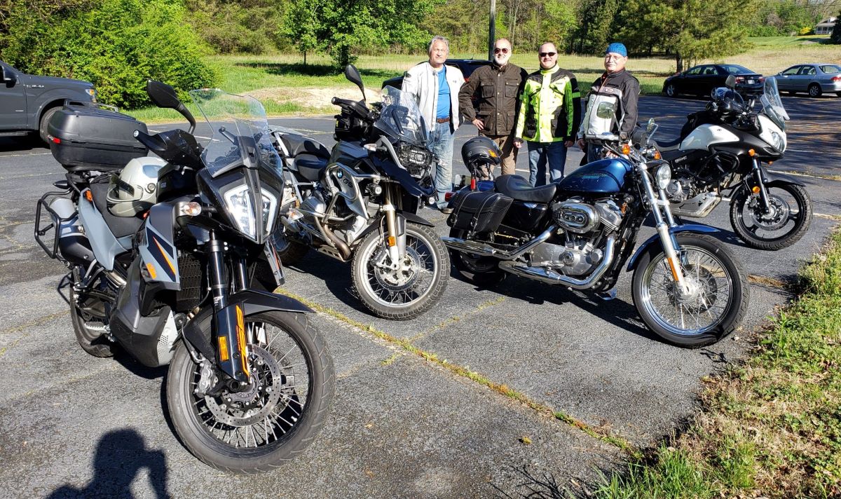 The Saturday rain forecast kept inching toward 100% while Sunday’s kept inching toward 0%, setting up a real “no-brainer”. So four riders (Mel, Dave, Larry and Dennis) met after Timothy’s early Sunday service and headed to the N GA mountains in glorious pollen-free sunshine. The plan was to ride as much of the Loops as we could fit into a beautiful spring day.