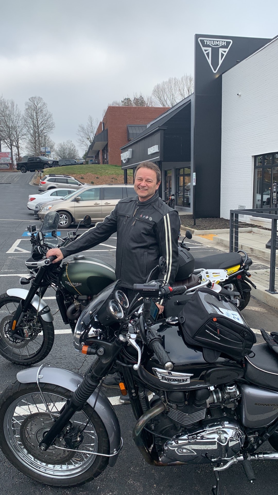 Dave and Dan met at Pop's Garage and Coffee House for a little kick start to the day. While there Richard @Triumph Roswell solved a mystery for Dan's Triumph Scrambler 1200. Dan had recently added a Deltran charging lead and after doing so the bike was showing a maintenance needed light and message. Apparently, as smart as the computer is on that Scrambler it is not smart enough to remember the date and time when the battery is disconnected. Resetting the date and time solved the issue and made for a good start to the day.