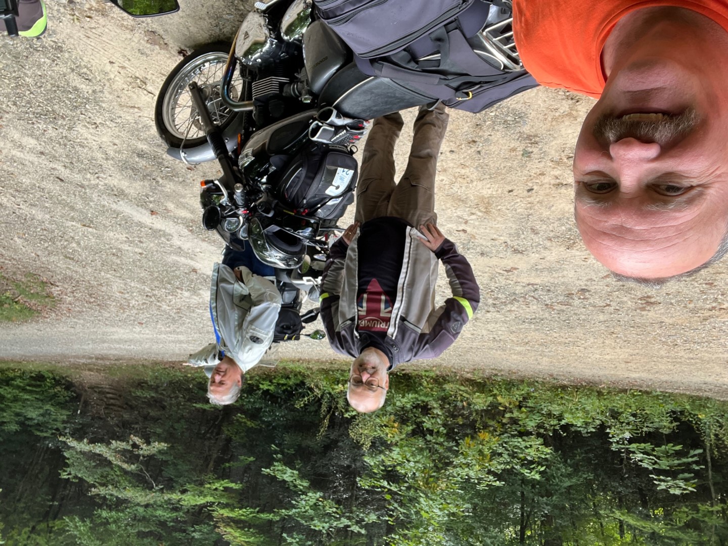 As they continued up Tray Mtn Rd, they encountered a train of about a dozen Jeeps descending a particularly steep and rocky section of FS – not much room for error here! At the Tray Mtn trailhead, we decided Dave’s Triumph Bonneville T90 was probably the only “light scrambler” of its type this deep in the woods, ever! After resting a bit, their choices to continue were reduced by a third when they found the Tray Mtn FS road heading down to Helen was now gated (apparently for some time, judging by the weed growth). Oh well, they continued N on Corbin Creek FS which turned out to be a truly “long and winding road” – all downhill and very fun. When they reached GA 75, then went N a bit and picked up a road none had ridden before – Owl Creek Rd – and took it S to Wolf Pen Gap. Turned out to be an especially beautiful road in an especially beautiful area – add it to your list.