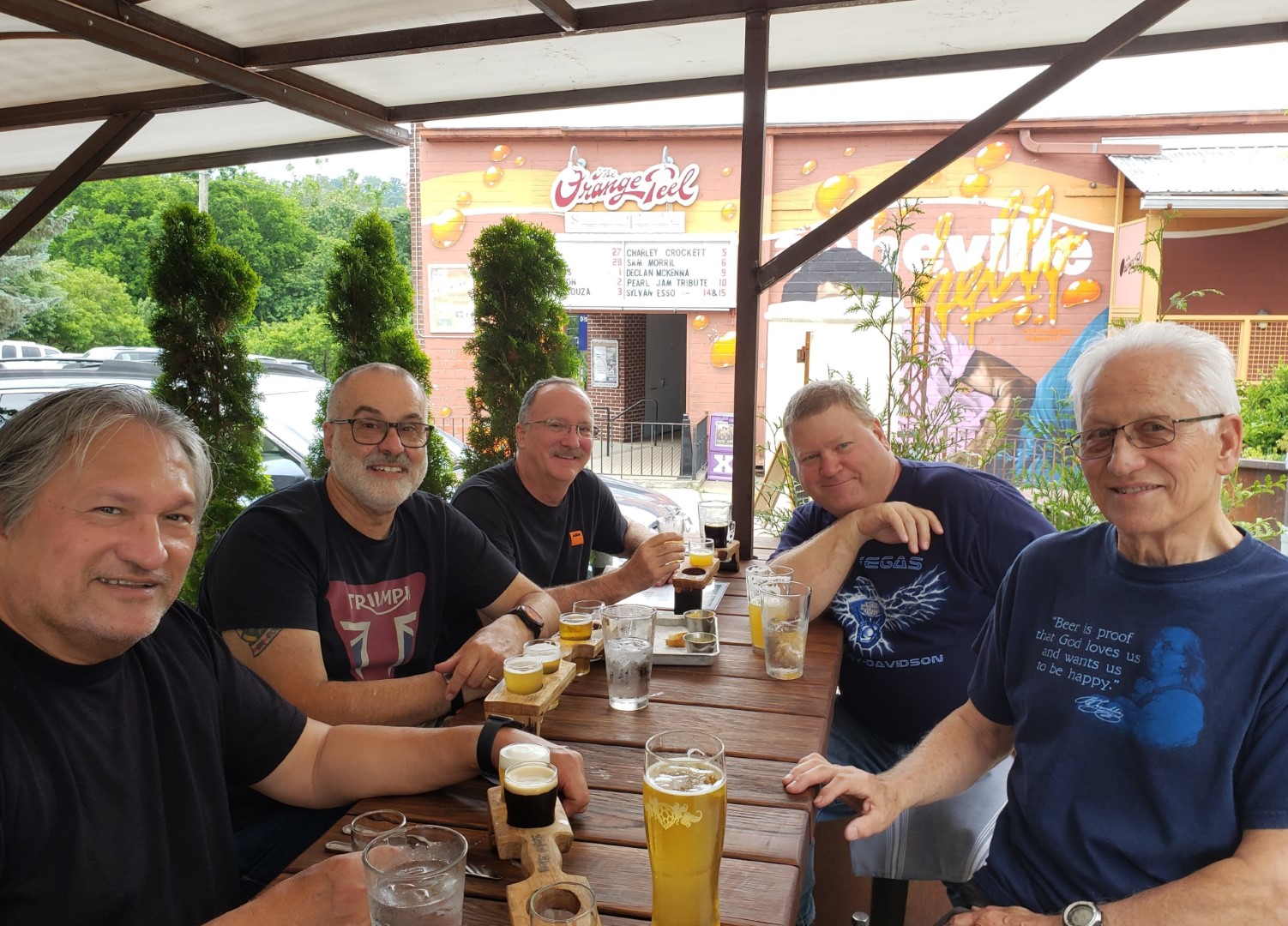 In late afternoon, with pop-ups abounding, they reached Mile 0 which coincides with the beginning of the Skyline Drive which travels north through the Shenandoah National Park. Hmmm, maybe another day! An early lunch was taken in Roanoke where Dan split off and headed back to Asheville for an overnight stopover before heading back to Woodstock for his daughter’s birthday the next day. The other four riders continued on up the BRP to their camping home for the evening, the Devils Backbone Brewery and Campground. While the camping was quite basic it was adequate, the restaurant was great and served as a nice reward for their long ride. Now, how to get home…