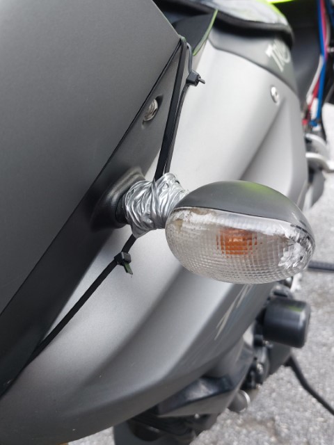 With breakfast over Dan reinstated the correct orientation of his front turn signals in a way McGuyver himself would have been proud of.