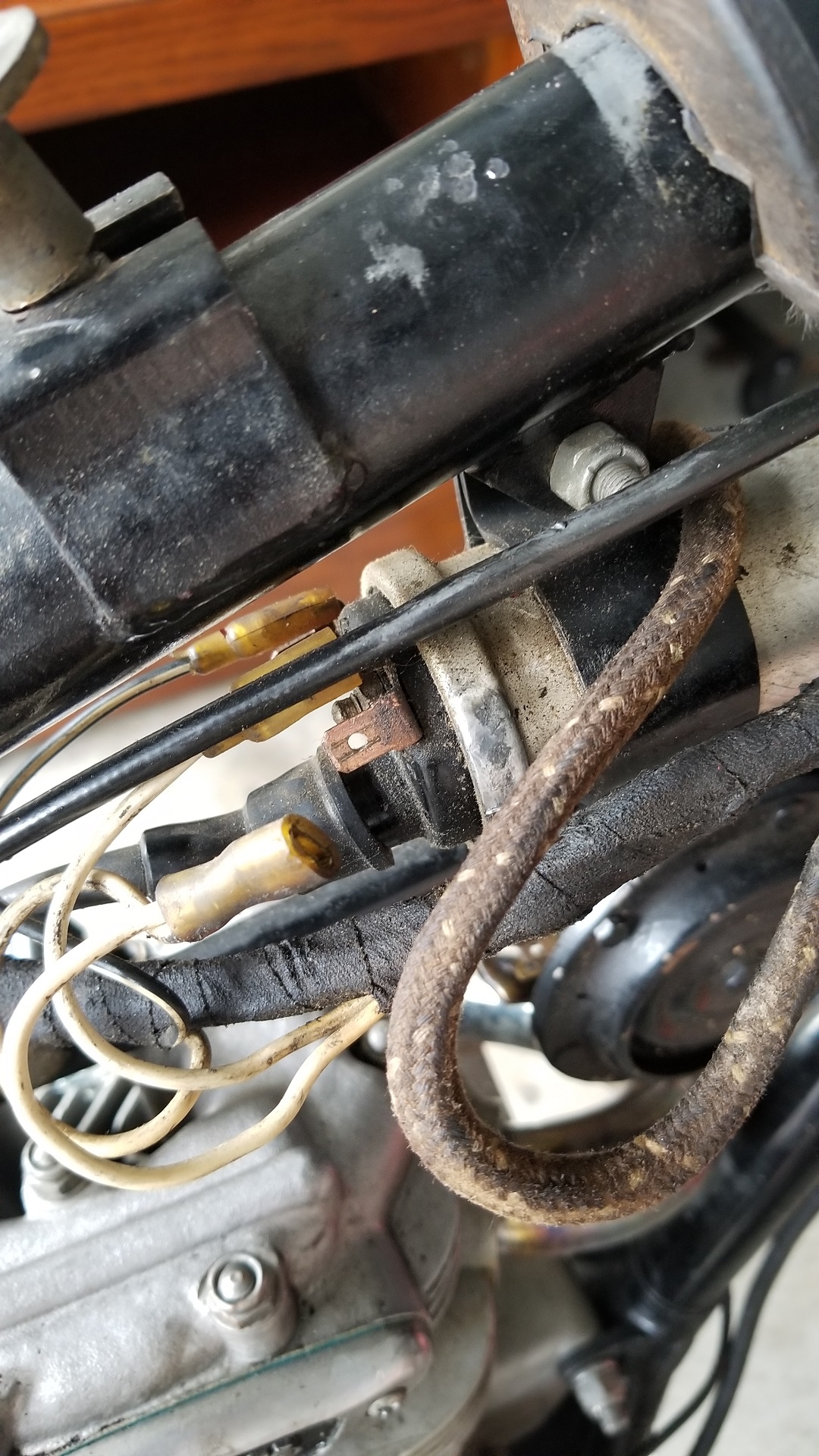 I pulled the plug and kicked it over to confirm there was no spark, only to confirm my suspicions of an ignition circuit problem.